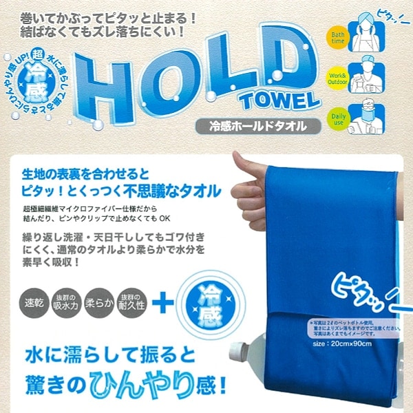 - 先着50セット限定 ひんやり感が半端ない!!生地の裏表を合わせるとあら不思議・・・ピタッとくっついて止まる!冷感ホールドタオル(2枚セット)
