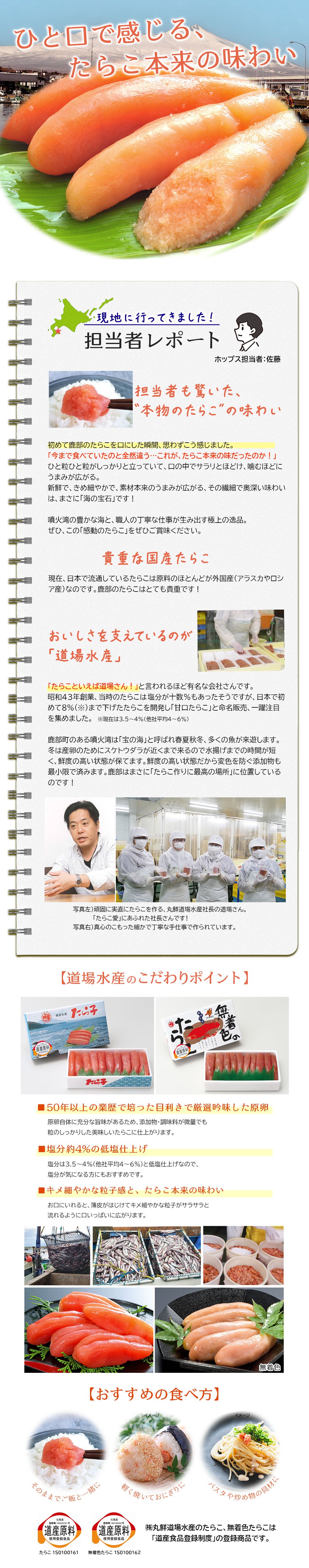 貴重な国産品!『北海道噴火湾・丸鮮道場水産 たらこ・無着色たらこ』ひと口で分かるキメ細やかな粒子感とたらこ本来の味わいをお楽しみください!!