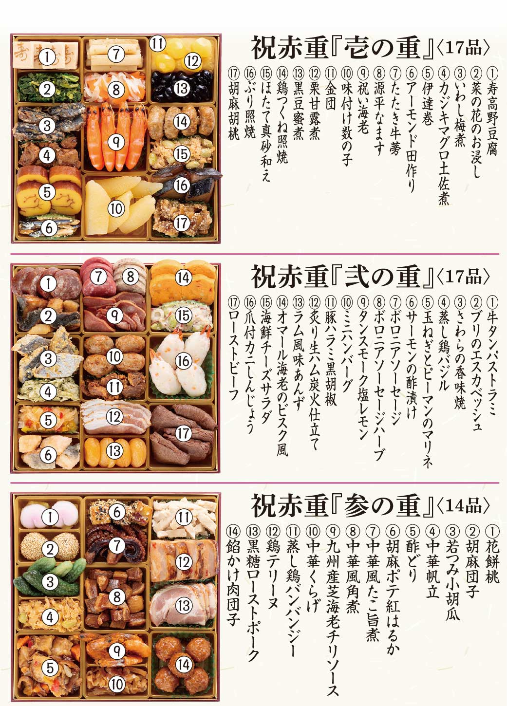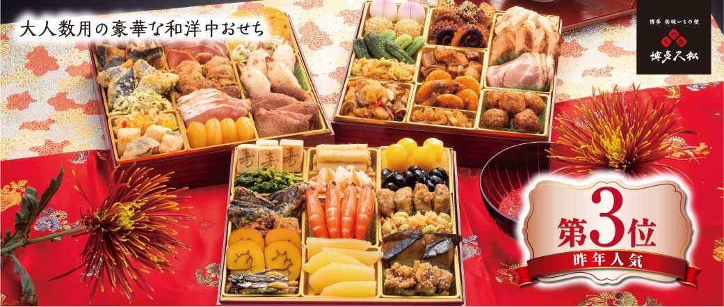 伝統の「和」、華やかな「洋」、深い味わいの「中華」。 三つの食文化が調和した、贅沢な和洋中おせち。 お正月の食卓に、家族みんなが笑顔になる多彩な味わいをお届けします。