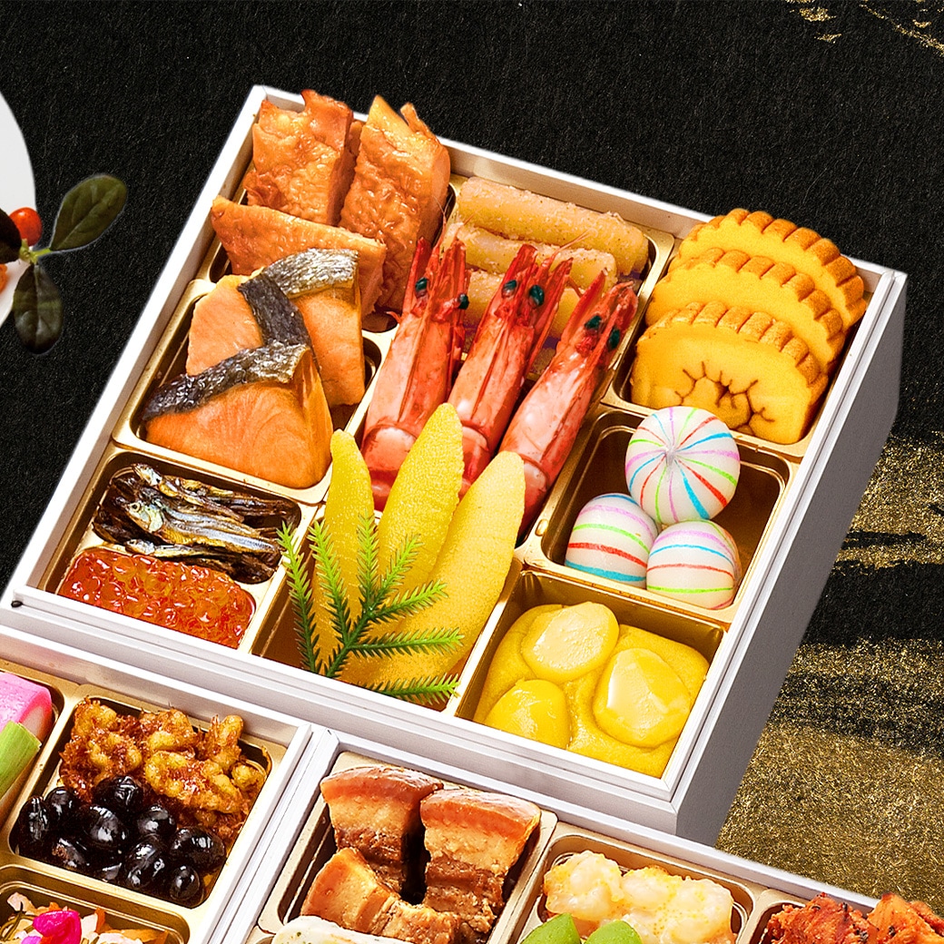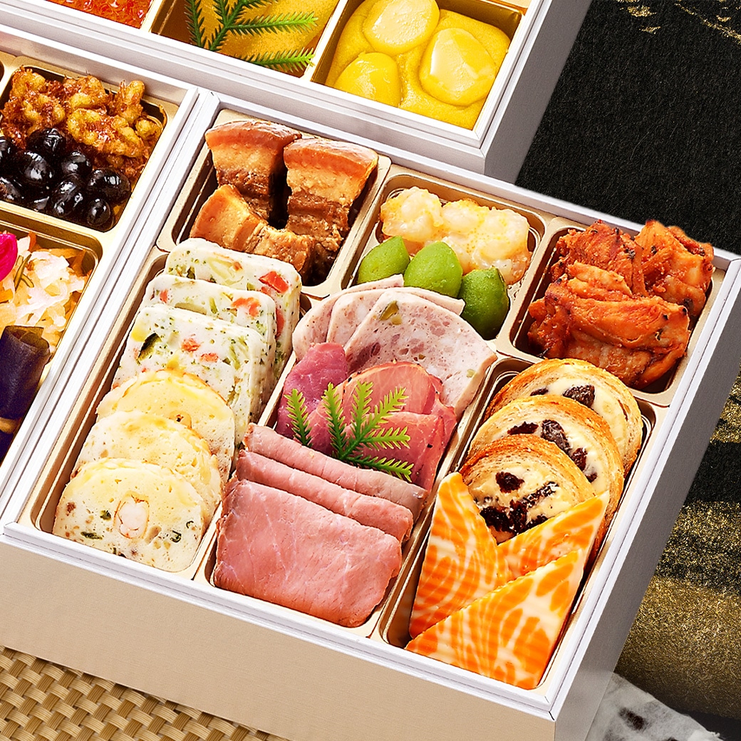 お子様に人気の洋風食材と、ご年輩の方に喜ばれる昔ながらの和の食材を詰込んだ、親族一同集まるお正月に、うってつけのおせちです。
