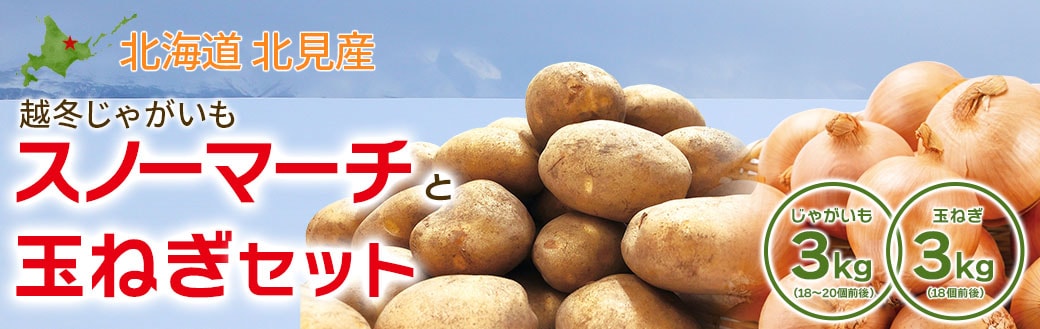 【送料込】北海道 北見産 越冬じゃがいも「スノーマーチ」(3kg)+ 玉ねぎ(3kg)セット