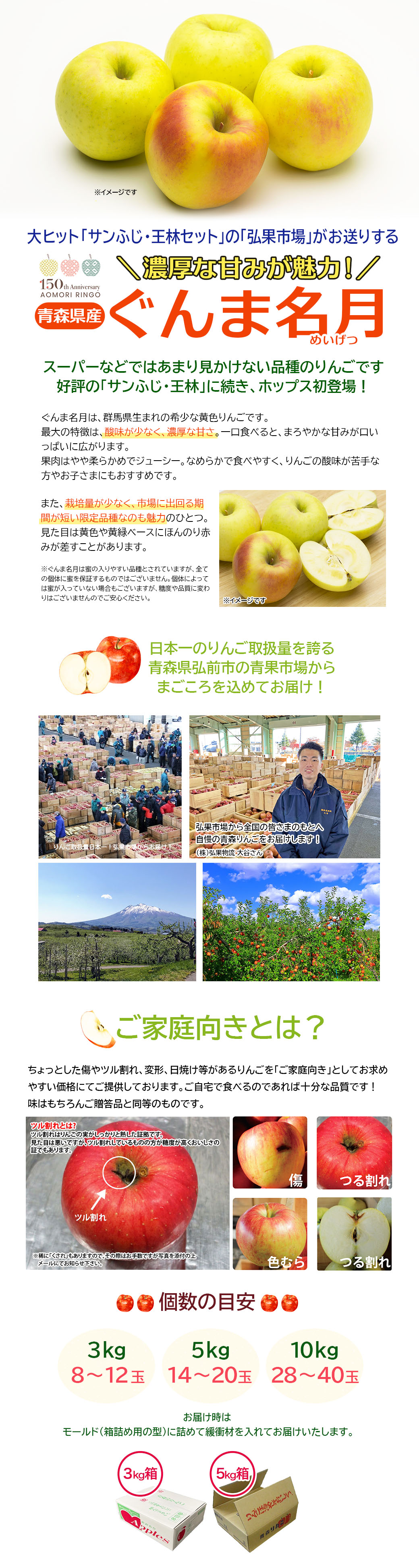 ※収穫の状況やご注文の状況により多少遅れる場合があります。青森県りんご 希少品種「ぐんま名月」産地直送!【ご家庭向き:3kg、5kg、10kg】おまとめ買いがお得!(4箱までなら何箱買っても送料一律1,200円!-ただしお届け場所は同一1か所、同一kgの箱に限ります)