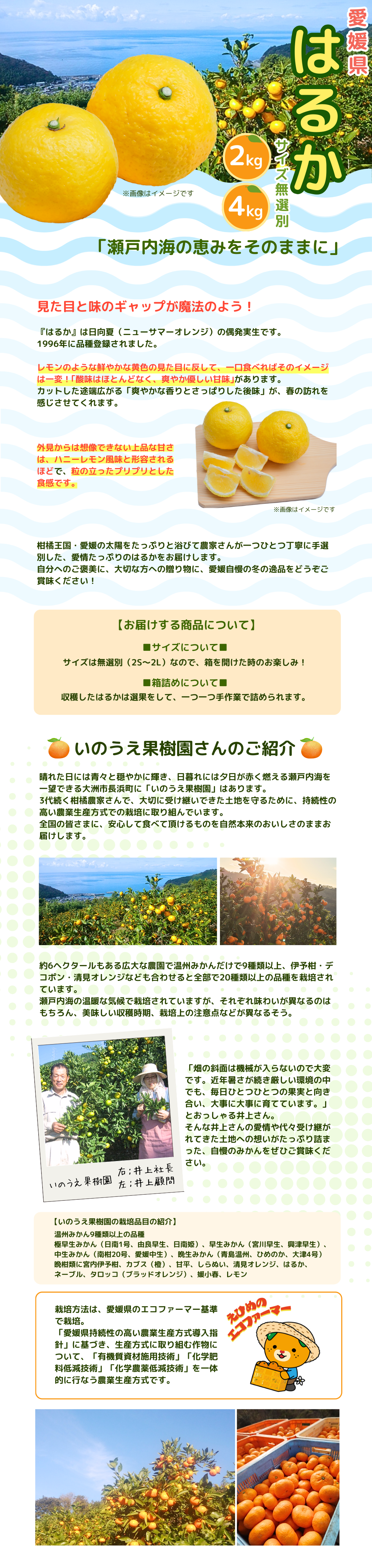 【送料込】愛媛の農園より直送!【柑橘『はるか』/いのうえ果樹園】爽やかな甘みが格別! サイズは無選別(2S~2L)2kgまたは4kg
