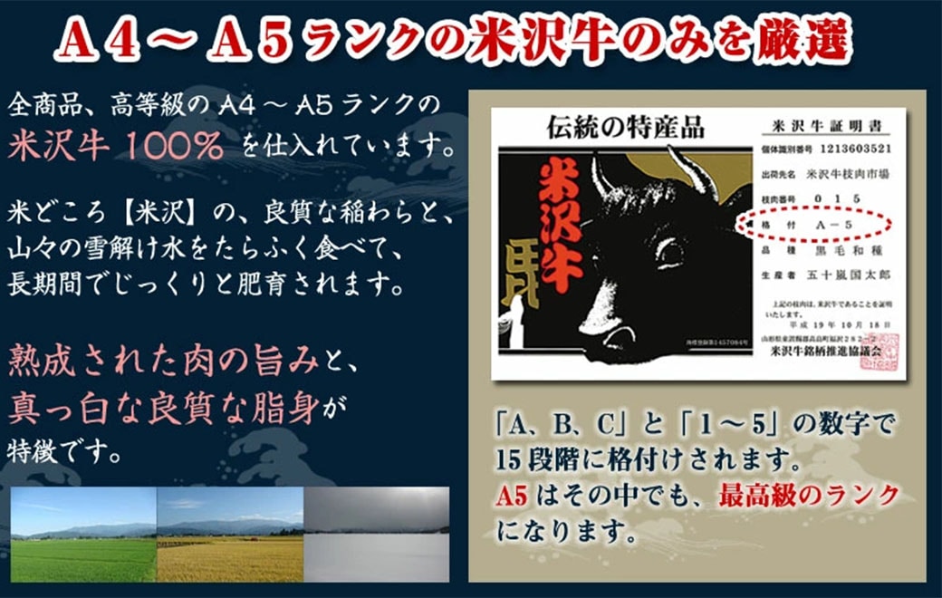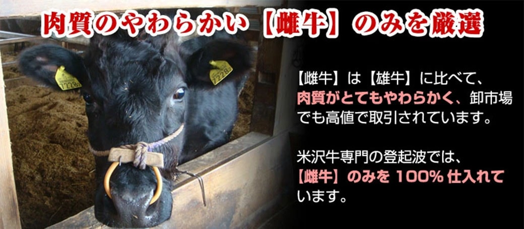 - 山形県産黒毛和牛・米沢牛100%(米沢・置賜産)部位カタ、モモ、バラ