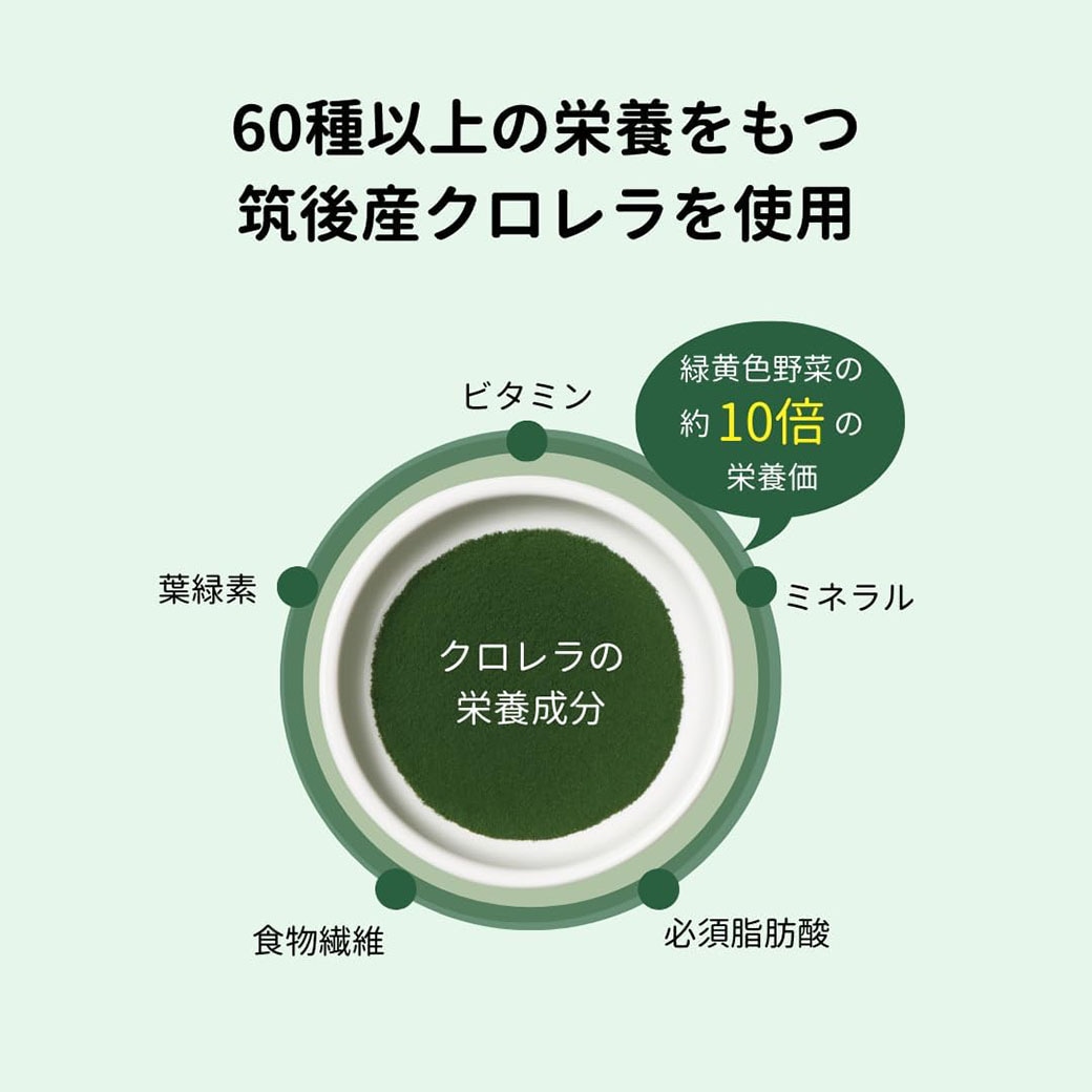 忙しい方や、食生活が不規則になりがちな方の健康維持をサポートします。 - デトックスサポート:クロレラに含まれる食物繊維や葉緑素(クロロフィル)が、すっきりとした体内環境づくりを応援。