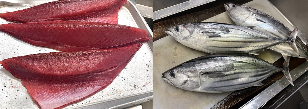 水揚げされたばかりの鮮度抜群の鰹を、すぐに捌きます。