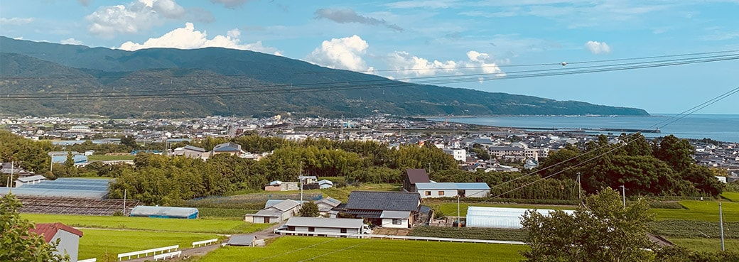 田野町は、青い空、海・川・緑、鮮やかな山野、温暖で豊かな自然に恵まれた、四国一面積の小さな田園の町です。