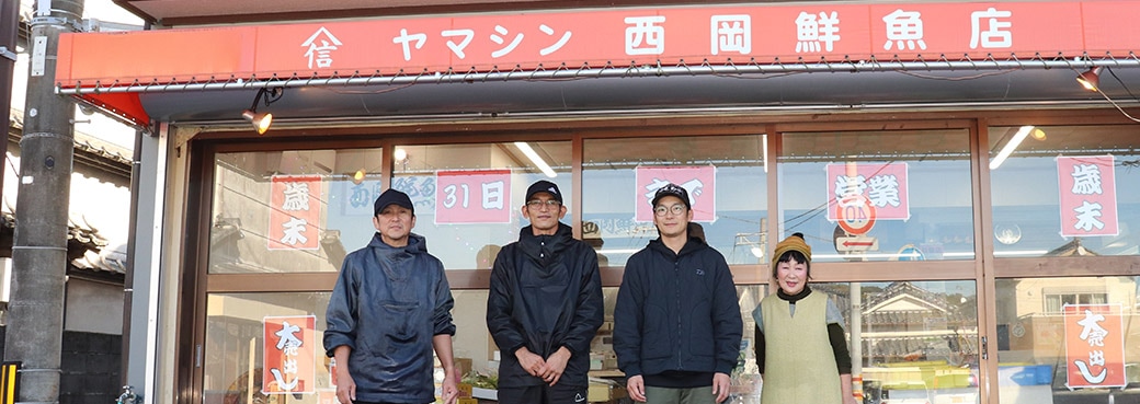 そんな自然豊かな環境ならではの、新鮮な海の幸を取り扱い、真心込めてお届けしています。家族で営む「ヤマシン西岡鮮魚店」は、地域に寄り添い、毎日笑顔の絶えない温かいお店です。